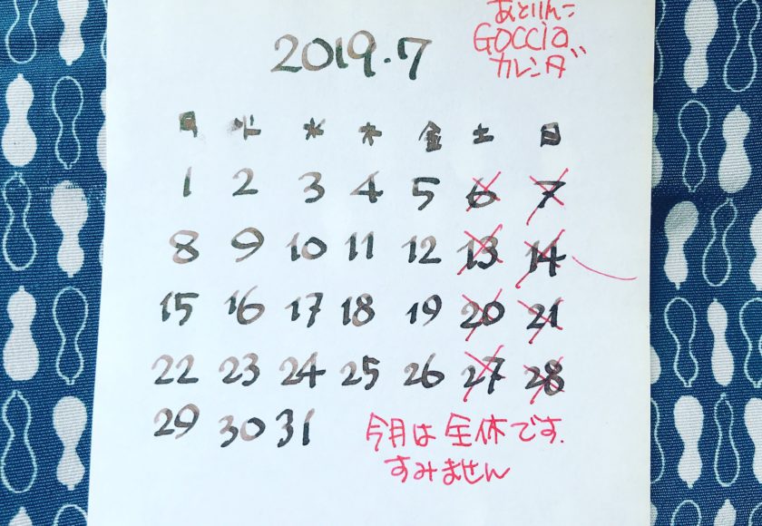 週末雑貨屋あとりんこゴッチャ7月カレンダー